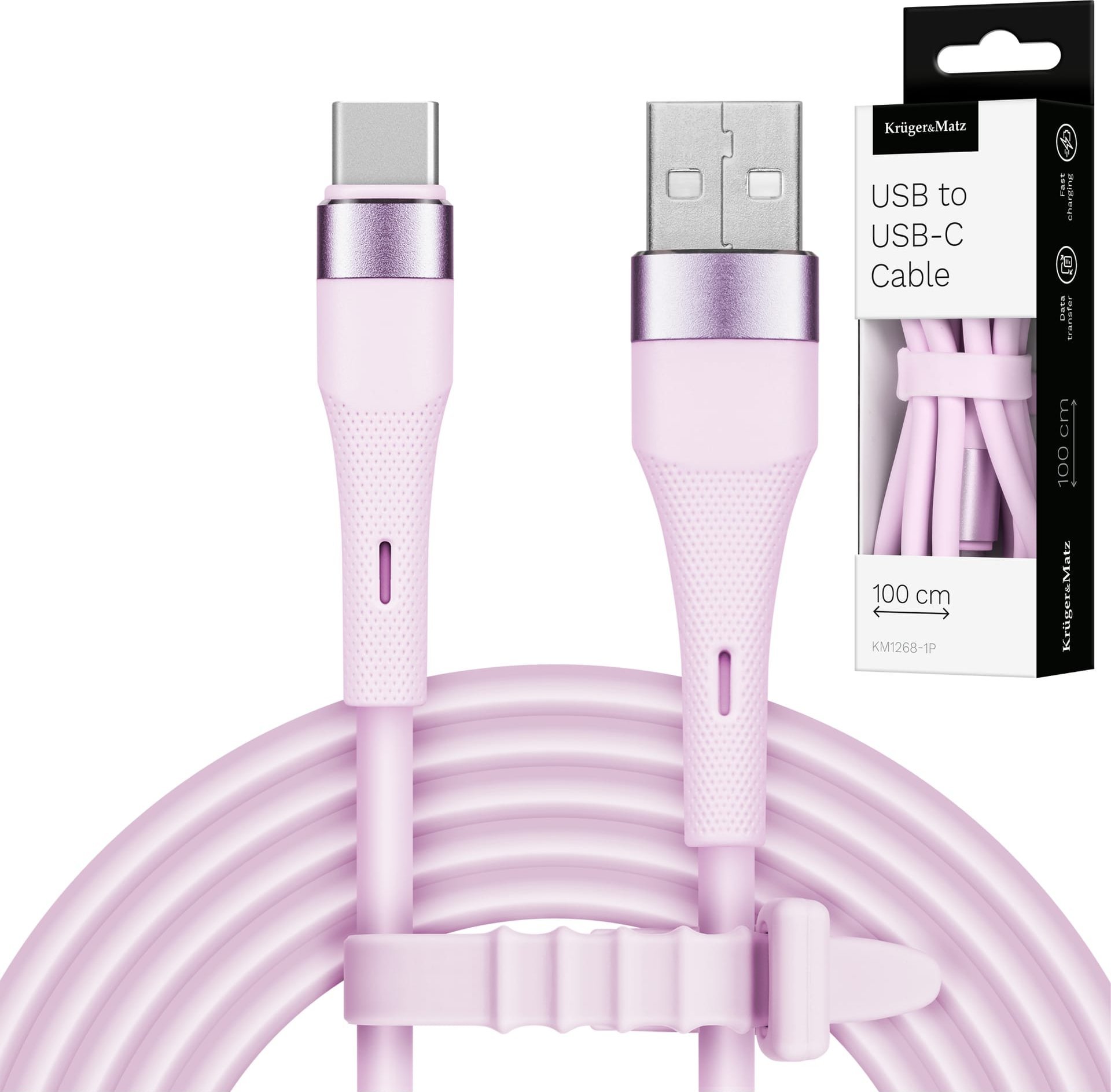 Καλώδιο USB Kruger&Matz USB-A - USB-C 1 m Ροζ (KM1268-1P)