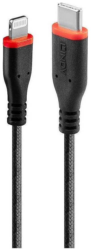Lindy 31285. Μήκος καλωδίου: 0,5 m, Connector 1: Lightning, Connector 2: USB C. Ποσότητα ανά συσκευασία: 1 pc, Τύπος συσκευασίας: Poly bag{Plugin Type} Απλή προσθήκη . {Μήκος καλωδίου} 0,5 m . {Χρώμα} Μαύρο. {Τύπος καλωδίου} Αρσενικό - Αρσενικό . {Braid} Με πλεξούδα. {Συνδετήρας 1} Lightning . {Standard} Δεν υπάρχουν δεδομένα . {Connector 2} USB-C
