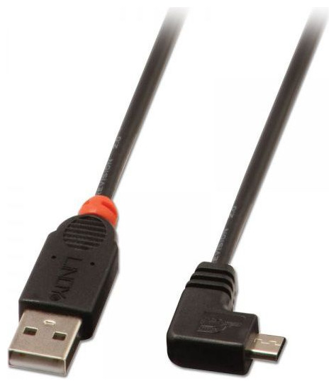 Καλώδιο Lindy, μήκους 1 μέτρου, που καταλήγει με βύσμα USB A στο ένα άκρο και γωνιακό βύσμα Micro USB στο άλλο.{Χρώμα} Μαύρο. {Τύπος βύσματος} Γωνιακό βύσμα . {Τύπος καλωδίου} Αρσενικό - Αρσενικό . {Connector 1} USB-A . {Πλεξούδα} Χωρίς πλέξη. {Standard} 2.0 . {Connector 2} microUSB . {Μήκος καλωδίου} 1 m