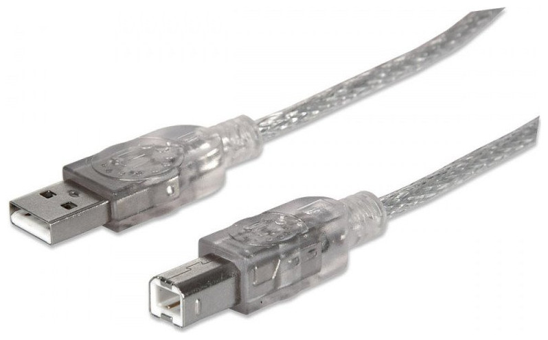 Manhattan Kabel USB 2.0 A-B M/M 1,8m srebrny