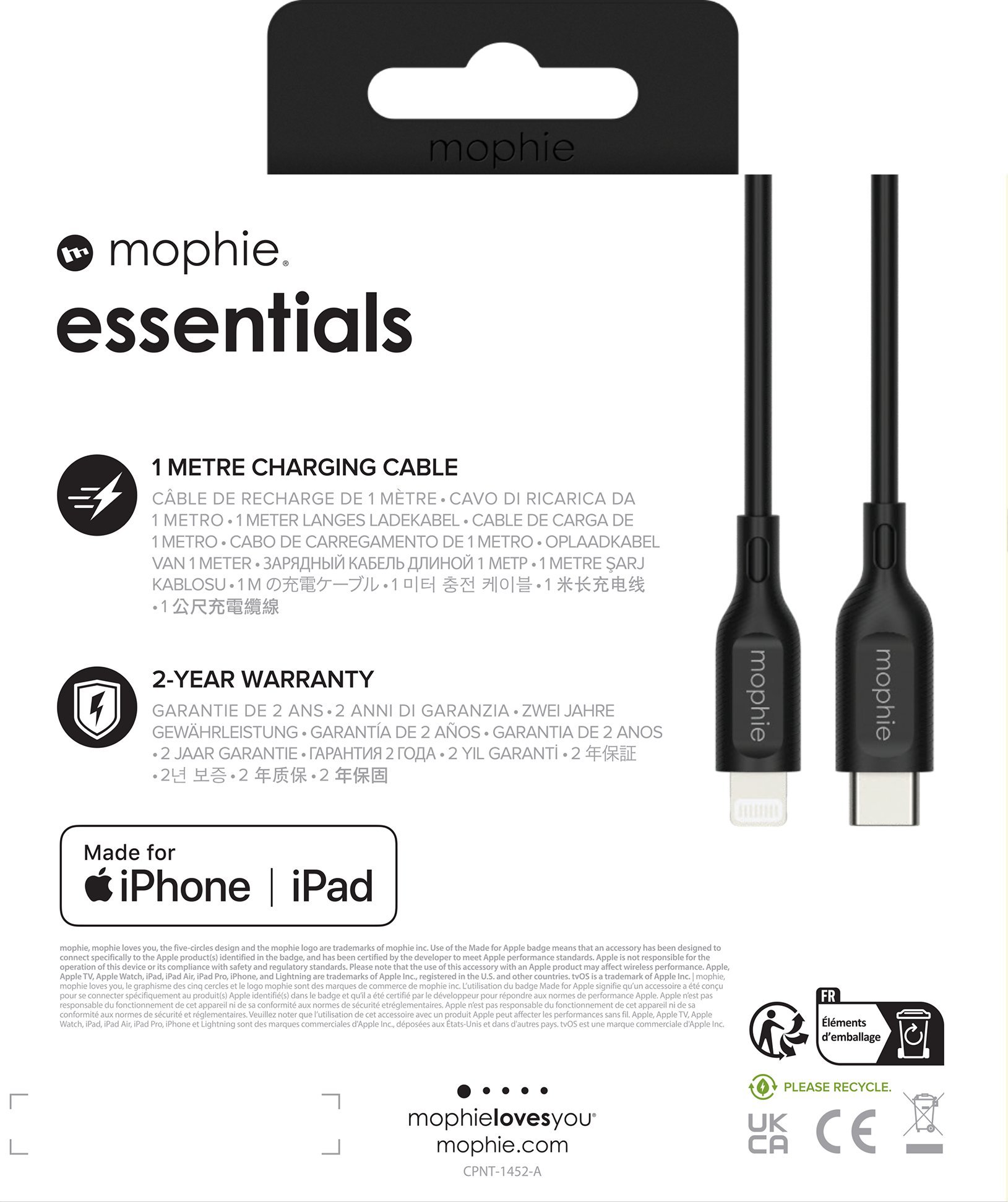 Mophie Essentials - Lightning to USB-C 1m cable (Black)
