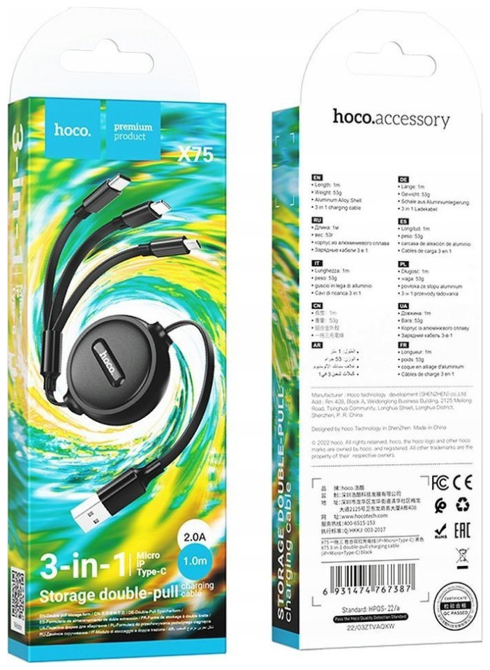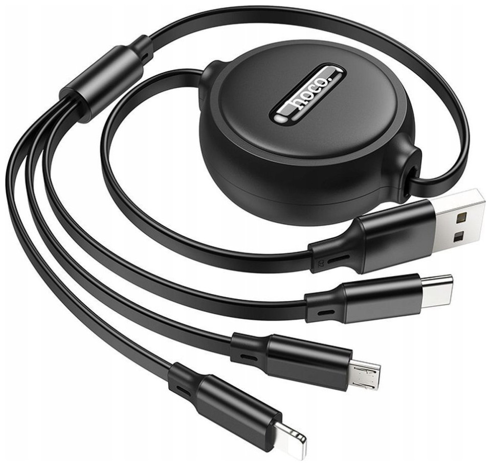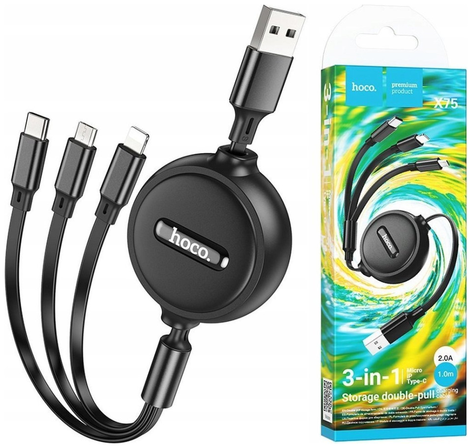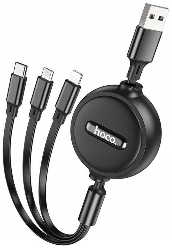 Καλώδιο USB Partner Tele.com HOCO καλώδιο 3 σε 1 USB A σε Lightning / Micro USB / Τύπος C 2A X75 1 m μαύρο