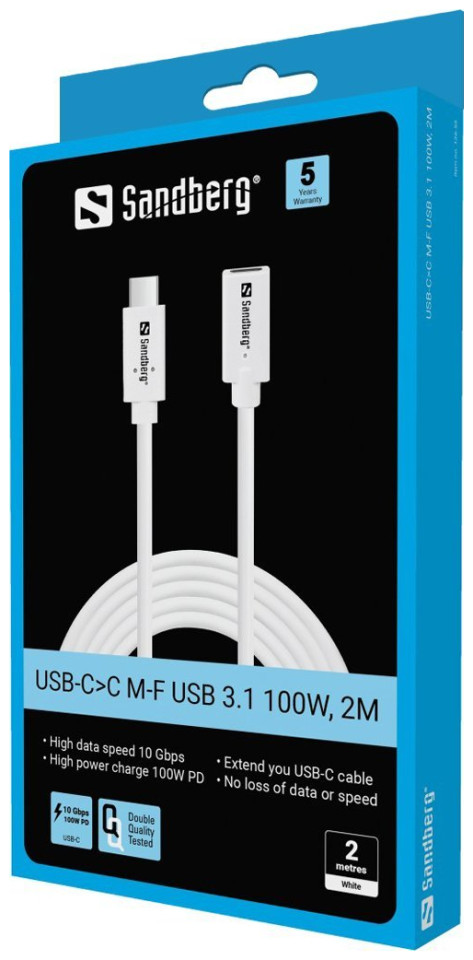Sandberg USB-CC M-F USB 3.1 Καλώδιο USB 100W, 14105359 5705730136559