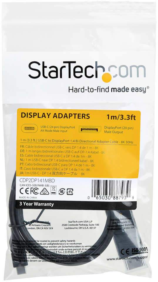 Το καλώδιο StarTech USB-C - DP σάς επιτρέπει να συνδέσετε μια συσκευή USB Type-C (ή Thunderbolt 3) σε μια συσκευή με υποδοχή DisplayPort. Λειτουργεί Plug&Play, επομένως δεν χρειάζεστε επιπλέον προγράμματα οδήγησης. Χάρη σε αυτό το καλώδιο, μπορείτε να μεταδώσετε βίντεο και ήχο σε 8K στα 60Hz. Μια συσκευή με θύρα USB Type-C πρέπει να υποστηρίζει τη λειτουργία DP Alt για να λειτουργεί με αυτό το καλώδιο.