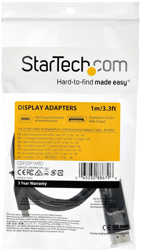 Το καλώδιο StarTech USB-C - DP σάς επιτρέπει να συνδέσετε μια συσκευή USB Type-C (ή Thunderbolt 3) σε μια συσκευή με υποδοχή DisplayPort. Λειτουργεί Plug&Play, επομένως δεν χρειάζεστε επιπλέον προγράμματα οδήγησης. Χάρη σε αυτό το καλώδιο, μπορείτε να μεταδώσετε βίντεο και ήχο σε 4K στα 60Hz. Μια συσκευή με θύρα USB Type-C πρέπει να υποστηρίζει τη λειτουργία DP Alt για να λειτουργεί με αυτό το καλώδιο.