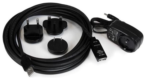 Kabel USB 2.0 ze złaczem zasilania sieciowego o długości 5M. Produkt w kolorze Czarnym.