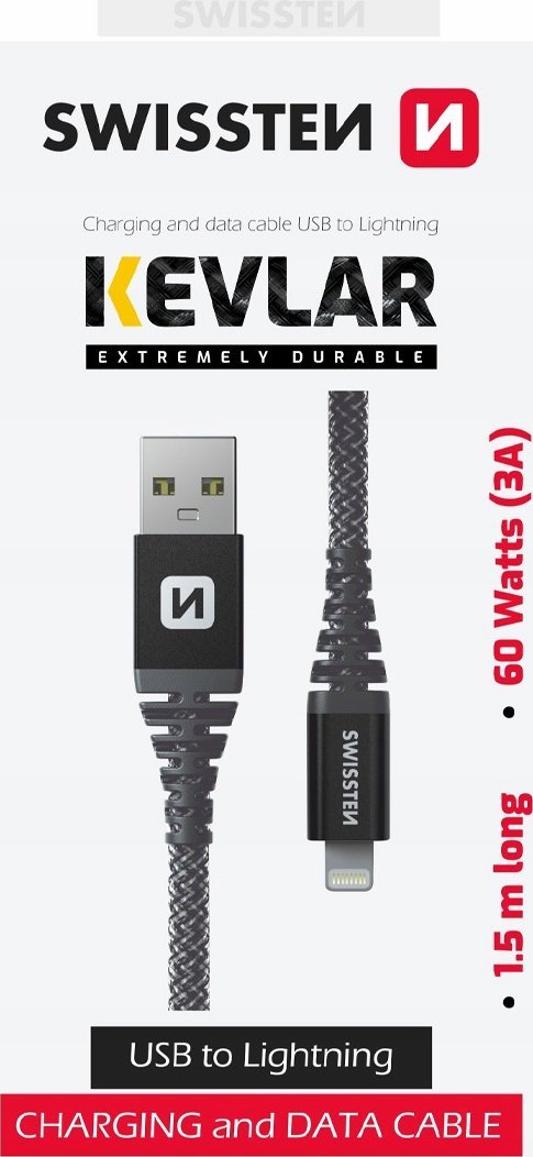 Καλώδιο USB Swissten Data Cable Kevlar Usb / Lightning 1.5 M Ανθρακί