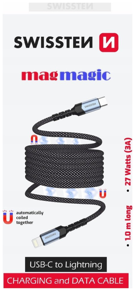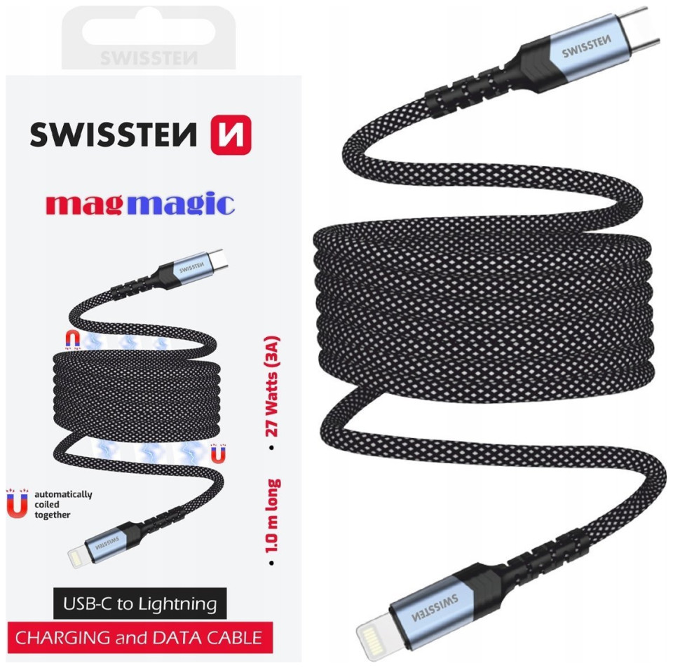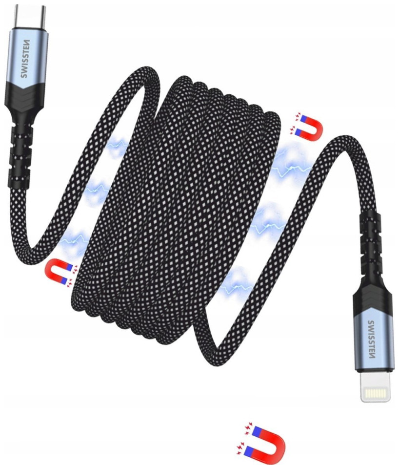 Καλώδιο USB Swissten Μαγνητικό Καλώδιο Δεδομένων Αυτοπεριελισσόμενο USB-C / Lightning 1 M