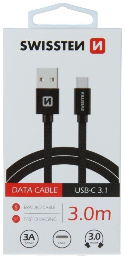 Καλώδιο USB Swissten USB-A - USB-C 3 m Μαύρο (71527900)