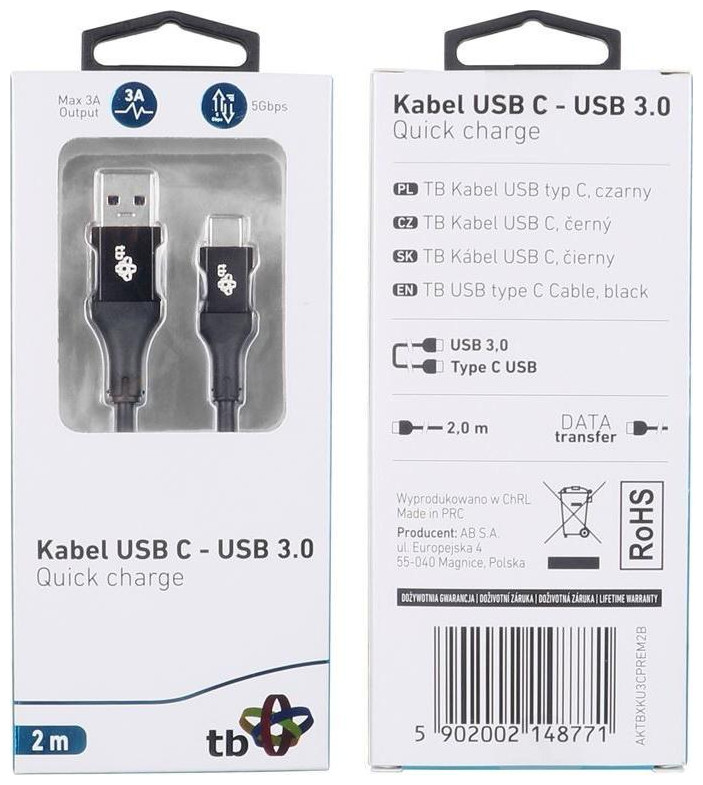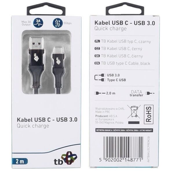 Καλώδιο USB Type-C για φόρτιση smartphone, περιφερειακών συσκευών και μεταφορά δεδομένων. Η συμμετρική υποδοχή USB Type C επιτρέπει τη σύνδεση με την υποδοχή και στις δύο όψεις. Είναι κατασκευασμένη από αξιόπιστα υλικά, σύρμα χαλκού Για χρήση με smartphone, tablet, αξεσουάρ και άλλες συσκευές που διαθέτουν υποδοχή USB Γρήγορη φόρτιση (Quick Charge, μαλακό καλώδιο, που εξασφαλίζει άνεση στη χρήση. EAN: 5902002148771 Εγγύηση: εγγύηση εφ' όρου ζωής Κωδικός προμηθευτή: AKTBXKU3CPREM2B Μήκος καλωδίου: 2 m Τύπος: Καλώδιο Εφαρμογή: Υποδοχές υπολογιστή #1: Αρσενικές υποδοχές τύπου USB #2: Αρσενικό Τύπος USB C Standard: USB 3.0/USB 3.1 Χρώμα: Μαύρο Άλλες παράμετροι: Υποστηρίζει γρήγορη φόρτιση (Quick Charge){Plugin Type} Απλή προσθήκη . {Plugin Type} Απλή προσθήκη . {Plugin Type} Απλή προσθήκη . {Plugin Type} Απλή προσθήκη . {Plugin Type} Απλή προσθήκη . {Μήκος καλωδίου} 2 m . {Μήκος καλωδίου} 2 m . {Μήκος καλωδίου} 2 m . {Μήκος καλωδίου} 2 m . {Μήκος καλωδίου} 2 m . {Χρώμα} Μαύρο. {Χρώμα} Μαύρο. {Χρώμα} Μαύρο. {Χρώμα} Μαύρο. {Χρώμα} Μαύρο. {Τύπος καλωδίου} Αρσενικό - Αρσενικό . {Τύπος καλωδίου} Αρσενικό - Αρσενικό . {Τύπος καλωδίου} Αρσενικό - Αρσενικό . {Τύπος καλωδίου} Αρσενικό - Αρσενικό . {Τύπος καλωδίου} Αρσενικό - Αρσενικό . {Σύνδεση 1} USB-A . {Σύνδεση 1} USB-A . {Σύνδεση 1} USB-A . {Σύνδεση 1} USB-A . {Σύνδεση 1} USB-A . {Πλεξούδα} Χωρίς πλέξη. {Πλεξούδα} Χωρίς πλέξη. {Πλεξούδα} Χωρίς πλέξη. {Πλεξούδα} Χωρίς πλέξη. {Πλεξούδα} Χωρίς πλέξη. {Standard} 3.0 . {Standard} 3.0 . {Standard} 3.0 . {Standard} 3.0 . {Standard} 3.0 . {Connector 2} USB-C . {Connector 2} USB-C . {Connector 2} USB-C . {Connector 2} USB-C . {Connector 2} USB-C