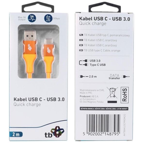 Καλώδιο USB Type-C για φόρτιση smartphone, περιφερειακών συσκευών και μεταφορά δεδομένων. Η συμμετρική υποδοχή USB Type C επιτρέπει τη σύνδεση με την υποδοχή και στις δύο όψεις. Είναι κατασκευασμένη από αξιόπιστα υλικά, σύρμα χαλκού Για χρήση με smartphone, tablet, αξεσουάρ και άλλες συσκευές που διαθέτουν υποδοχή USB Γρήγορη φόρτιση (Quick Charge, μαλακό καλώδιο, που εξασφαλίζει άνεση στη χρήση). Ισόβια εγγύηση! EAN: 5902002148795 Εγγύηση: εγγύηση εφ' όρου ζωής Κωδικός προμηθευτή: AKTBXKU3CPREM2O Μήκος καλωδίου: 2 m Τύπος: Καλώδιο Εφαρμογή: Υποδοχές υπολογιστή #1: Αρσενικές υποδοχές τύπου USB #2: Αρσενικό Τύπος USB C Standard: USB 3.0/USB 3.1 γεν. Άλλες παράμετροι: Υποστηρίζει γρήγορη φόρτιση (Quick Charge){Plugin Type} Απλή προσθήκη . {Plugin Type} Απλή προσθήκη . {Plugin Type} Απλή προσθήκη . {Μήκος καλωδίου} 2 m . {Μήκος καλωδίου} 2 m . {Μήκος καλωδίου} 2 m . {Τύπος καλωδίου} Αρσενικό - Αρσενικό . {Τύπος καλωδίου} Αρσενικό - Αρσενικό . {Τύπος καλωδίου} Αρσενικό - Αρσενικό . {Σύνδεση 1} USB-A . {Σύνδεση 1} USB-A . {Σύνδεση 1} USB-A . {Πλεξούδα} Χωρίς πλέξη. {Πλεξούδα} Χωρίς πλέξη. {Πλεξούδα} Χωρίς πλέξη. {Χρώμα} Πορτοκαλί . {Χρώμα} Πορτοκαλί . {Χρώμα} Πορτοκαλί . {Standard} 3.0 . {Standard} 3.0 . {Standard} 3.0 . {Connector 2} USB-C . {Connector 2} USB-C . {Connector 2} USB-C