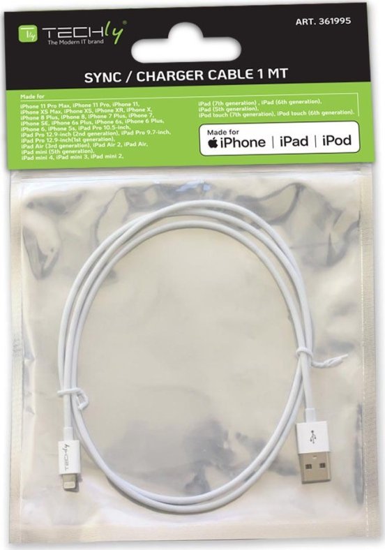 Καλώδιο USB Techly Techly Καλώδιο USB 2.0 USB-A σε Apple Lightning 8-Pin MFi M/M 1m