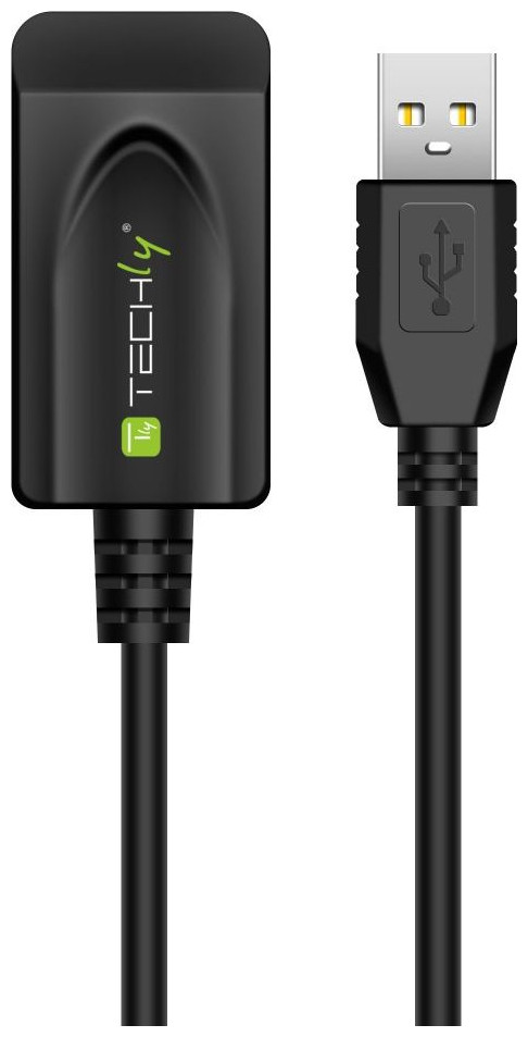 Techly IUSB-REP220TY3 Active USB Cable, P/N: 362220 – Active USB 2.0 A-A M/F Extension Cable 20m Black