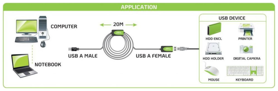 Επεκτείνει και ενισχύει το σήμα USB μεταξύ της συσκευής και του υπολογιστή