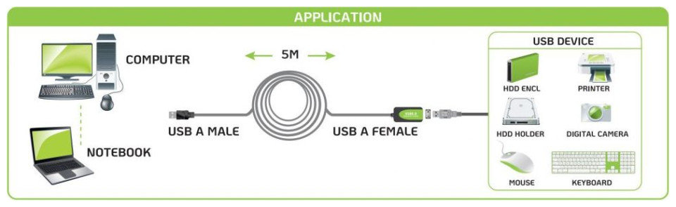 Επεκτείνει και ενισχύει το σήμα USB μεταξύ της συσκευής και του υπολογιστή