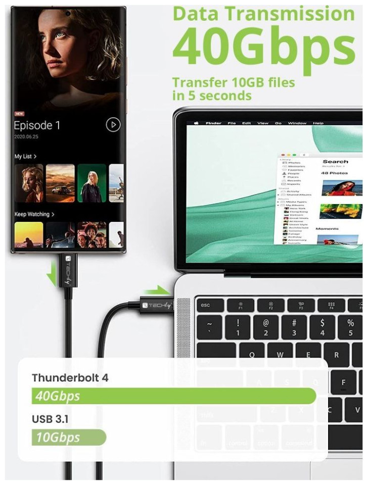 Συμβατό με το πρότυπο Thunderbolt 4 και συμβατό προς τα πίσω με παλαιότερες εκδόσεις