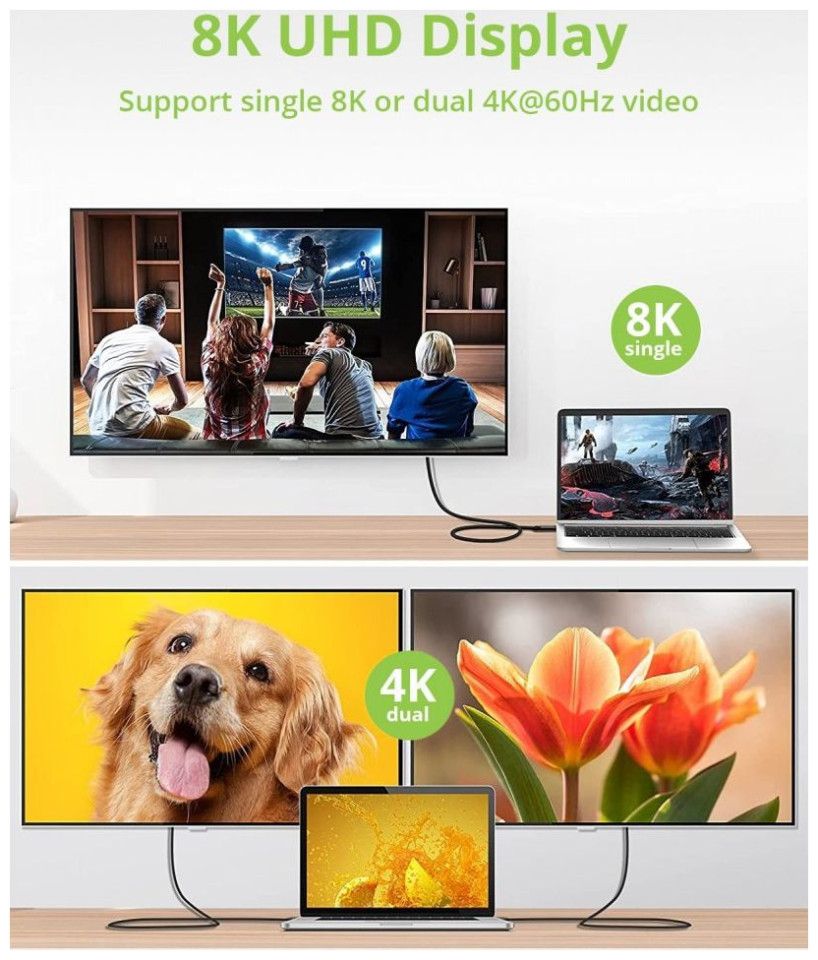 Υποστήριξη μεμονωμένου βίντεο σε ανάλυση έως 8K (7680x4320) στα 60Hz ή διπλού βίντεο σε ανάλυση έως 4K (3840x2160) στα 60Hz