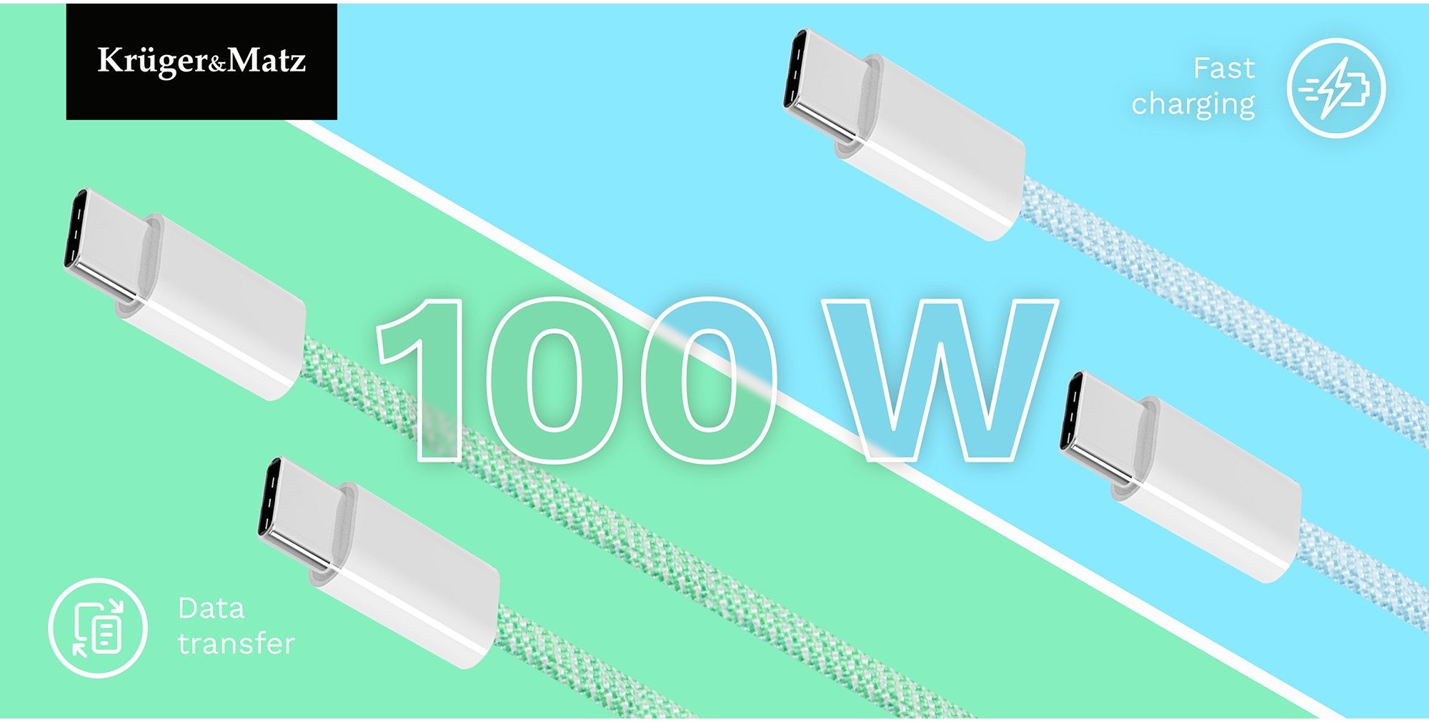 Kabel USB typu C - USB typu C 100 W 1,5 m zielony Kruger&Matz Basic