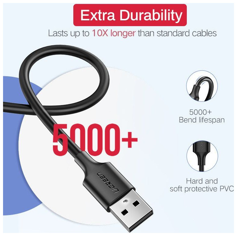 Το καλώδιο micro USB UGREEN είναι υψηλής ποιότητας, ανθεκτικό και αισθητικό. Το καλώδιο είναι κατασκευασμένο από υλικά υψηλής ποιότητας και οι επινικελωμένες άκρες του εξασφαλίζουν μακρά χρήση.