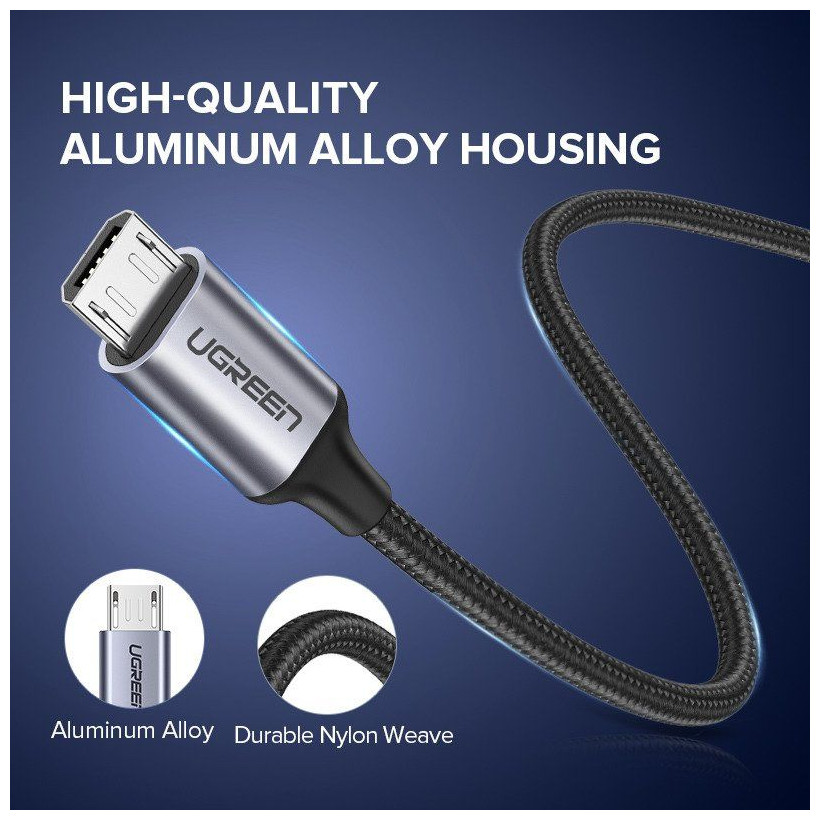 Το καλώδιο micro USB UGREEN είναι υψηλής ποιότητας, ανθεκτικό και αισθητικό. Υψηλής ποιότητας TPE, νάιλον πλεξούδα και μύτες αλουμινίου εξασφαλίζουν υψηλή αντοχή καλωδίου και μεγάλη διάρκεια ζωής.