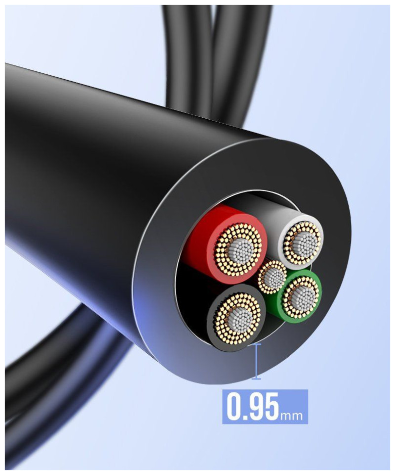Το καλώδιο είναι κατασκευασμένο από περιβαλλοντικά ασφαλές PVC, το οποίο εγγυάται ευελιξία και υψηλή αντοχή. Ένα άλλο αναμφισβήτητο πλεονέκτημα είναι το γεγονός ότι είναι πραγματικά δύσκολο να μπερδευτεί. Στο εσωτερικό του υλικού υπάρχει ένα καλώδιο από καθαρό χαλκό, εξασφαλίζοντας σταθερή μετάδοση δεδομένων. Συν επινικελωμένα βύσματα για καλύτερη απόδοση.