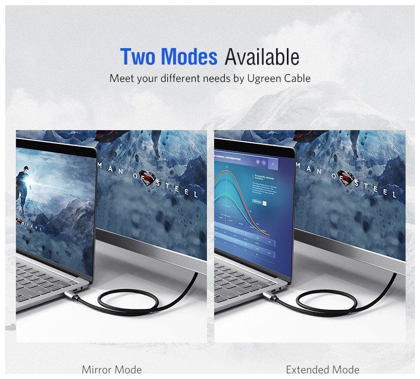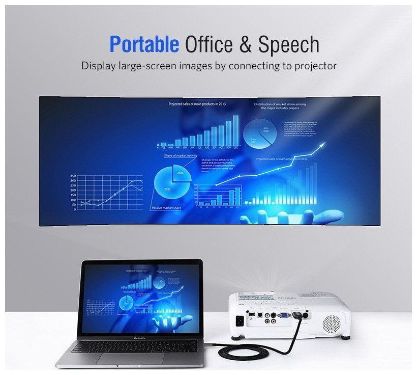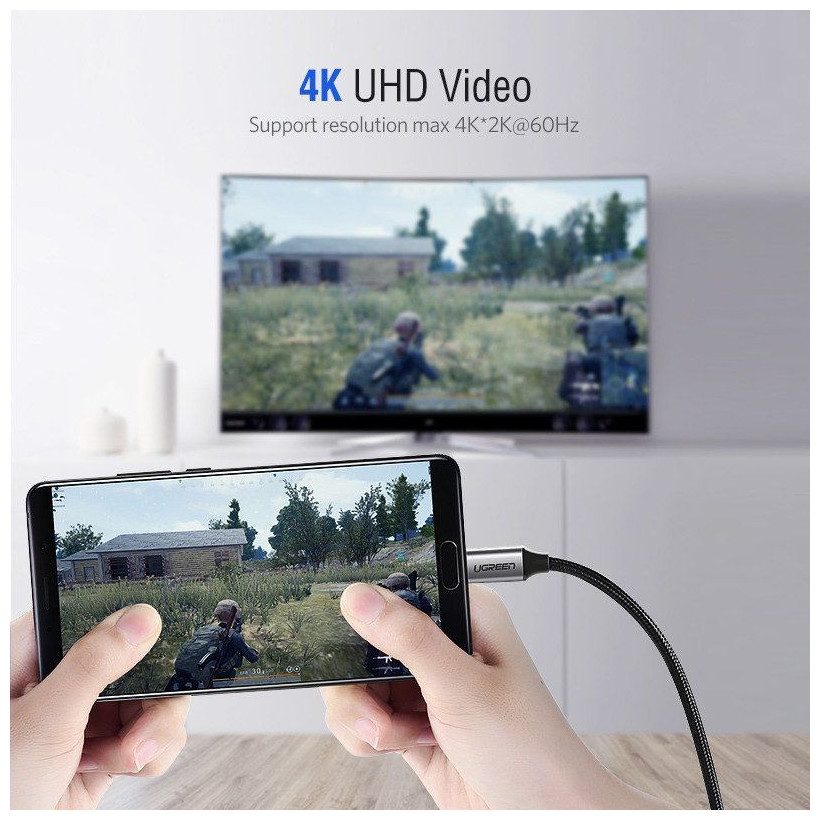 Kabel UGREEN USB-C do HDMI przesyła obraz i dźwięk wysokiej jakości z urządzenia z portem USB-C do telewizora, monitora lub projektora z interfejsem HDMI. Dzięki temu można łatwo przenieść zawartość ekranu telefonu lub laptopa na duży ekran i cieszyć się wysokiej jakości obrazem. Akcesorium wspiera przesył obrazu o maksymalnej rozdzielczości 4K x 2K (3840x2160). Kabel jest kompatybilny z portem USB-C oraz Thunderbolt 3 i wspiera między innymi takie urządzenia jak: Apple Macbook Pro, Dell XPS, Huawei Matebook i wiele innych.