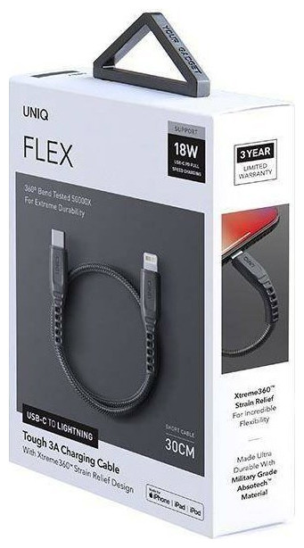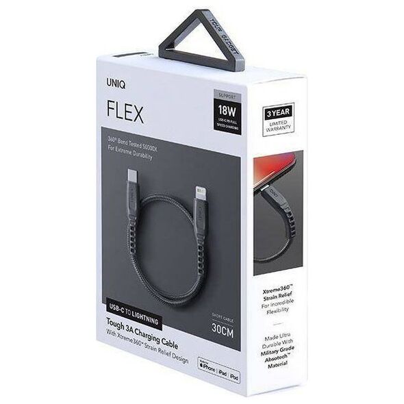 UNIQ FLEX νάιλον καλώδιο 18W USB-C/Lightning με πιστοποίηση MFI, το μοναδικό και μοναδικό καλώδιο φόρτισης Κατασκευασμένο από εξαιρετικά ανθεκτικό υλικό στρατιωτικής ποιότητας, το Military Grade Xtreme360™ παρέχει απίστευτη ευελιξία - Υποδοχή C Power Delivery με ισχύ 18 W, σας επιτρέπει να φορτίζετε το iPhone σας με τη μεγαλύτερη διαθέσιμη ταχύτητα - έως και 60% σε Έχει πιστοποίηση Apple MFI, πράγμα που σημαίνει ότι είναι απολύτως ασφαλές για το smartphone σας, διασφαλίζοντας ότι οι συσκευές Apple φορτίζονται με ασφάλεια στη μέγιστη δυνατή ταχύτητα - Ενισχυμένο καλώδιο USB-C σε Lightning με Xtreme360™. Ταχύτητα πλήρους φόρτισης C PD έως και 60% σε 30 λεπτά, - Δοκιμασμένο για ανθεκτικότητα 50000X, - Αυξημένη αντοχή καλωδίου Military Grade Absotech™, - Τεχνολογία Xtereme360™ SR Σχεδίαση 360°, άφθαρτες μύτες, - Παχύτερο εξωτερικό καλώδιο με διάμετρο 5 mm, - Πλεκτό σπιράλ για αποφυγή τριβής - Μήκος: 30 cm. CollectionFlexTypeCableConnectorUSB-C / LightningLength30cmColorGrayCompatibility Συσκευές Apple με υποδοχή Lightning{Plugin Type} Απλή προσθήκη . {Plugin Type} Απλή προσθήκη . {Plugin Type} Απλή προσθήκη . {Μήκος καλωδίου} 0,3 m . {Μήκος καλωδίου} 0,3 m . {Μήκος καλωδίου} 0,3 m . {Connector 1} USB-C . {Connector 1} USB-C . {Connector 1} USB-C . {Τύπος καλωδίου} Αρσενικό - Αρσενικό . {Τύπος καλωδίου} Αρσενικό - Αρσενικό . {Τύπος καλωδίου} Αρσενικό - Αρσενικό . {Braid} Με πλεξούδα. {Braid} Με πλεξούδα. {Braid} Με πλεξούδα. {Χρώμα} Γκρι . {Χρώμα} Γκρι . {Χρώμα} Γκρι . {Standard} 2.0 . {Standard} 2.0 . {Standard} 2.0 . {Συνδετήρας 2} Lightning . {Συνδετήρας 2} Lightning . {Συνδετήρας 2} Lightning