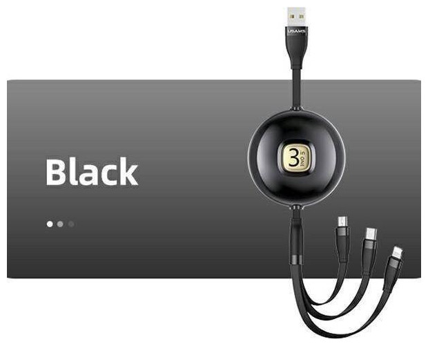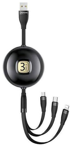 Αναδιπλούμενο καλώδιο USAMS U69 3-σε-1 με τρία άκρα (Lightning/USB-C/Micro) χάρη στο οποίο μπορείτε να συνδέσετε οποιαδήποτε συσκευή, κατασκευασμένη από υλικό TPE και PC υψηλής ποιότητας. Παρέχει πλήρη υποστήριξη τόσο για γρήγορη φόρτιση όσο και για μεταφορά δεδομένων.
