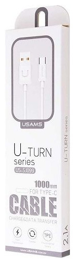 Το καλώδιο USB-C U-Turn USAMS επιτρέπει τη σταθερή και γρήγορη μεταφορά δεδομένων και επιτρέπει τη ροή ρεύματος έως και 2Α. Χάρη στη χρήση υλικών καλύτερης ποιότητας, είναι ανθεκτικό και ευέλικτο Το καλώδιο είναι εξοπλισμένο με ένα έξυπνο ολοκληρωμένο κύκλωμα που θα προστατεύει τη συσκευή μας από απροσδόκητες υπερτάσεις 2A - Σταθερή μεταφορά δεδομένων - Υλικό: TPE + PVC- Ρεύμα: 2A (Μέγ.) - Μήκος: 1 m- Συμβατότητα: Συσκευές με θύρα φόρτισης USB-C{Plugin Type} Απλή προσθήκη . {Plugin Type} Απλή προσθήκη . {Cable Type} Αρσενικό - Αρσενικό . {Cable Type} Αρσενικό - Αρσενικό . {Connector 1} USB-A . {Connector 1} USB-A . {Πλεξούδα} Χωρίς πλέξη. {Πλεξούδα} Χωρίς πλέξη. {Χρώμα} Λευκό . {Χρώμα} Λευκό . {Standard} 2.0 . {Standard} 2.0 . {Connector 2} USB-C . {Connector 2} USB-C . {Μήκος καλωδίου} 1 m. {Μήκος καλωδίου} 1 m