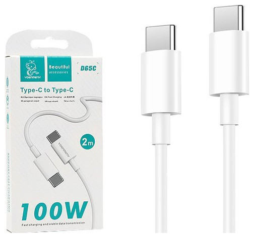 Καλώδιο USB Vega ΚΑΛΩΔΙΟ USB ΤΥΠ-C ΣΕ ΤΥΠ-C PD USB-C 3,6A DENMEN ΛΕΥΚΟ 2M D65 100W>