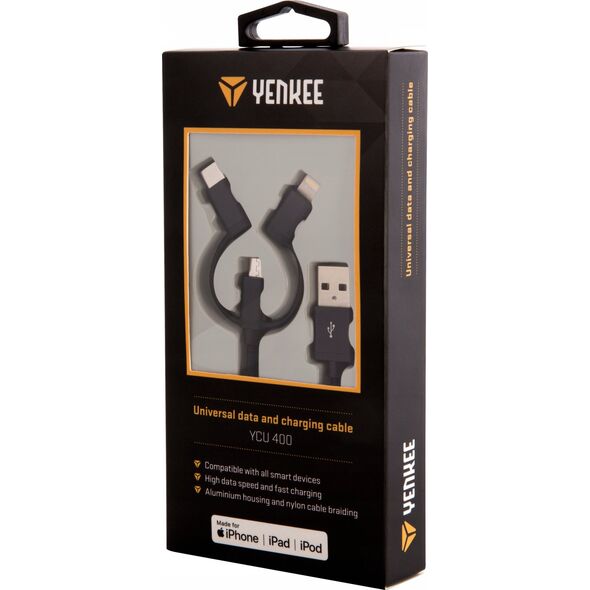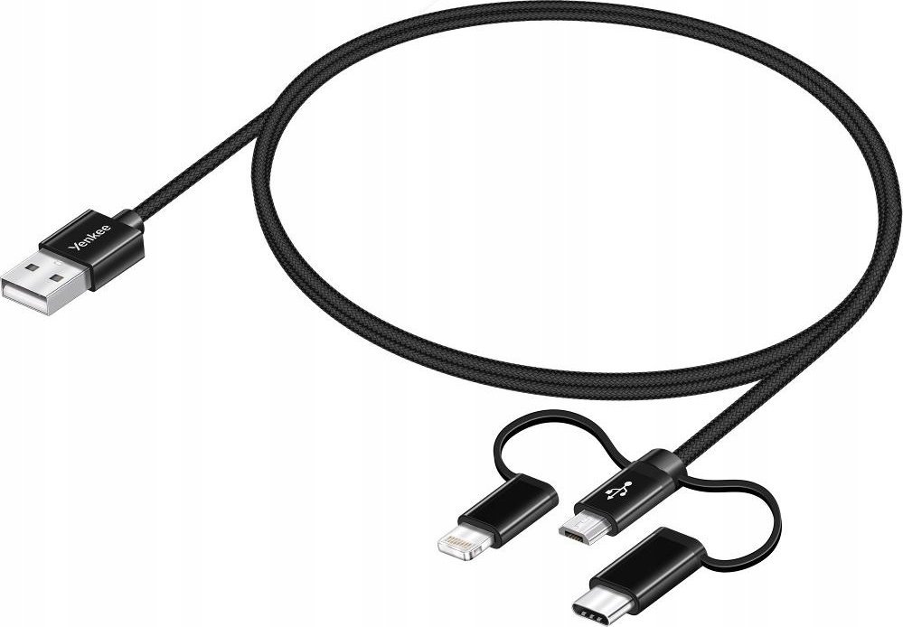 Καλώδιο USB Yenkee USB-A - USB-C + microUSB + Lightning 1 m Μαύρο (YCU 400BK)