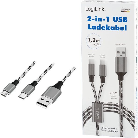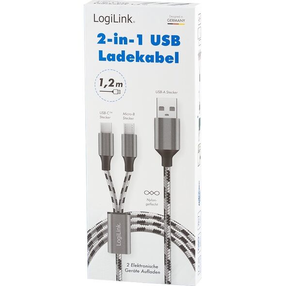 Καλώδιο USB2.0 A/M σε micro USB + USB-C, 1.2m