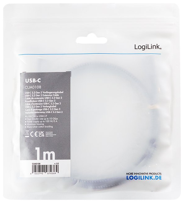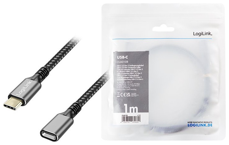 Καλώδιο USB3.2 gen2 TypeC σε USB-C/F, PD, 1m