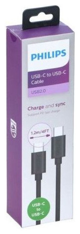 ΚΑΛΩΔΙΟ PHILIPS ΤΥΠΟΥ-C ΣΕ ΤΥΠΟΥ-C ΜΑΥΡΟ 1,2M 4FT DLC3104C/00