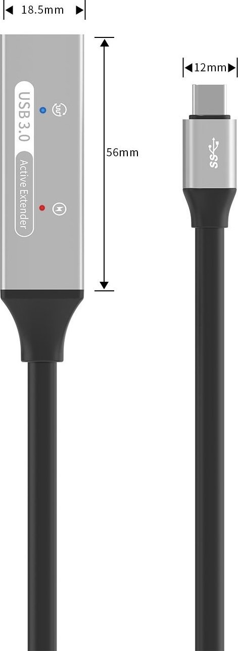 PremiumCord USB-C επαναλήπτης και καλώδιο επέκτασης Male-Female, 5Gbps Αλουμίνιο 10m