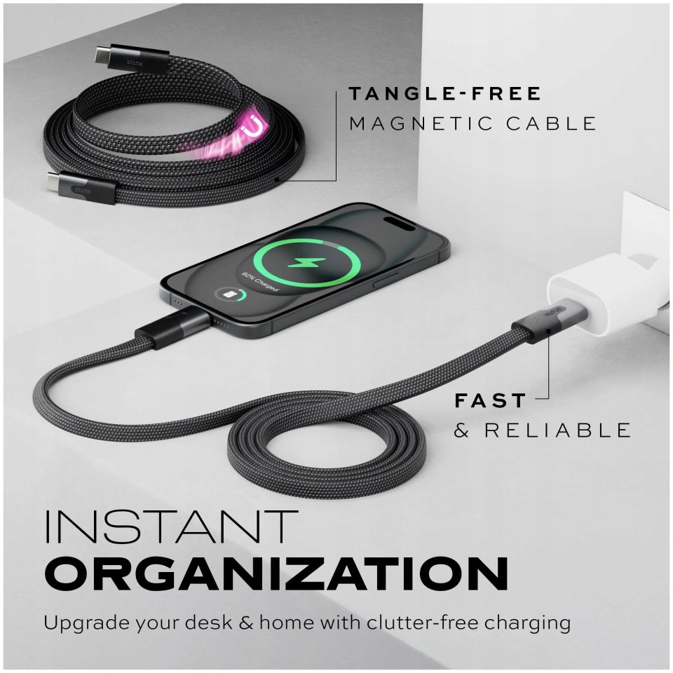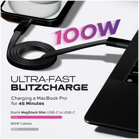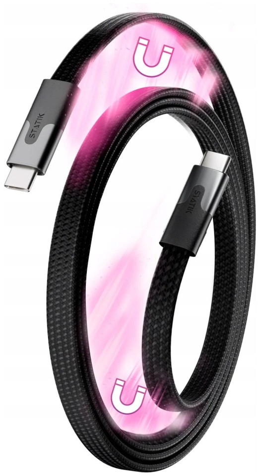 Statik MagStack Slim Pro - καλώδιο USB-C - USB-C 1m, με νάιλον πλέξη, επίπεδο, μαγνητικά αναδιπλούμενο (μαύρο)