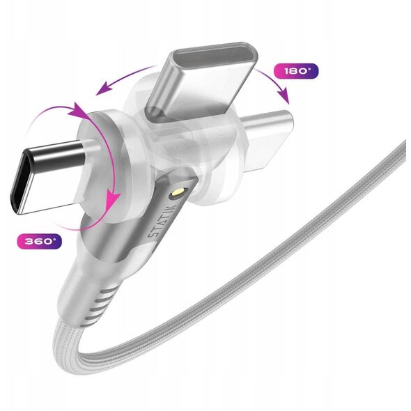 STATIK PowerPivot Pro Νάιλον Πλεγμένο Καλώδιο, USB-C σε USB-C, 1m, Λευκό