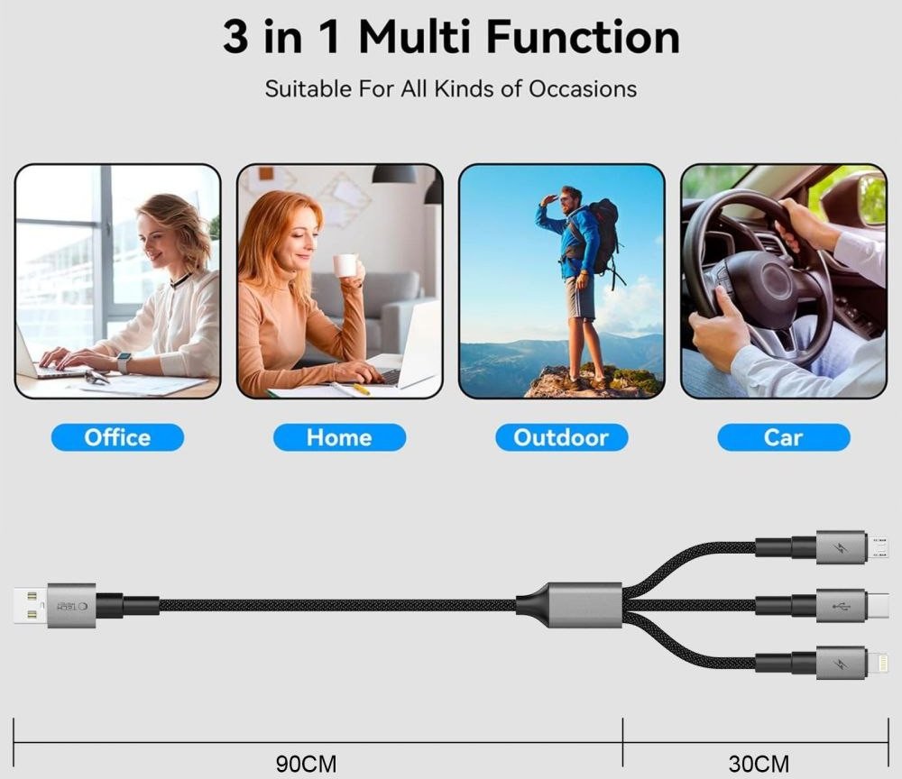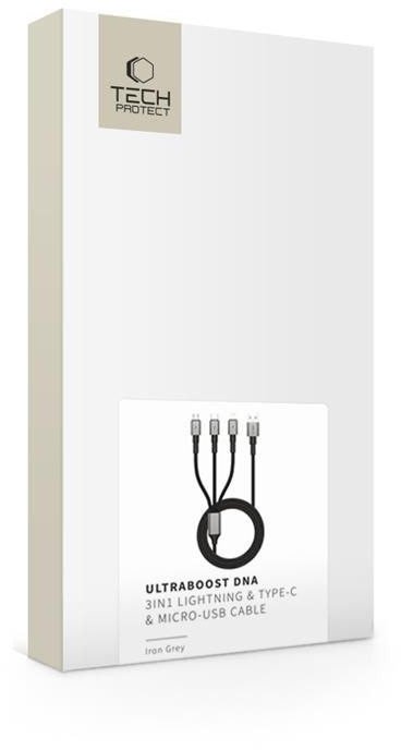 ΚΑΛΩΔΙΟ TECH-PROTECT ULTRABOOST DNA 3IN1 LIGHTNING & TYPE-C & MICRO-USB 3A 120CM ΣΙΔΕΡΕΝΙΟ ΓΚΡΙ