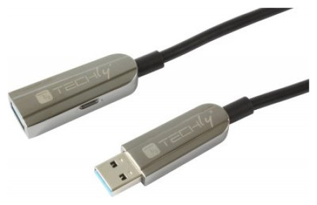 TECHLY USB3.0 AOC Υβριδικό καλώδιο οπτικών ινών 20m Μαύρο Υποστηρίζει μέγιστο εύρος ζώνης έως 5 Gbit Διάμετρος 4,6mm Βύσμα A σε Υποδοχή