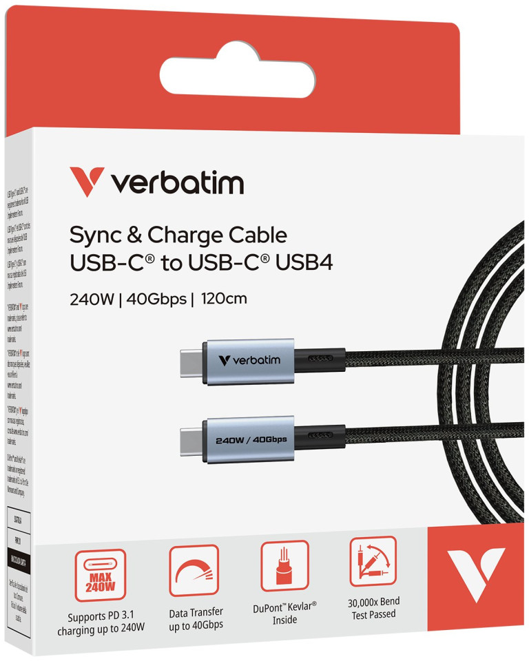 Verbatim 31847 καλώδιο USB USB4 Gen 2x2 1,2 m USB C Μαύρο