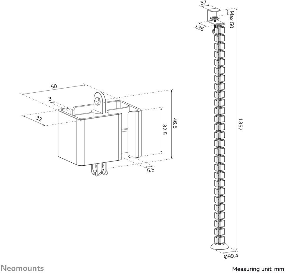 NEOMOUNTS Cable Spine Organizer for sit/stand desk frames clamp mounted white