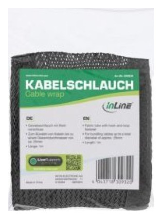 Οργανωτής InLine InLine® Καλώδιο περιτύλιξης, υφασμάτινος σωλήνας με κλείσιμο hook and loop, 1μ x 25mm διάμετρος, μαύρο