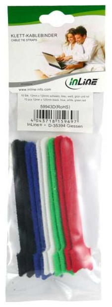 InLine Velcro για καλώδια 12x125mm 10 τμχ 5 χρώματα - για την οργάνωση της καλωδίωσης. Μπορούν να εγκατασταθούν γρήγορα και εύκολα, καθώς και να αφαιρεθούν με το χέρι, είναι επαναχρησιμοποιήσιμα και έχουν τεράστια λαβή. Ανθεκτικό στο θαλασσινό νερό, τα λάδια και τα λίπη.{Type} Velcro . {Type} Velcro . {Color} Διάφορα χρώματα. {Color} Διάφορα χρώματα. {Ποσότητα} 5 τεμάχια. {Ποσότητα} 5 τεμάχια