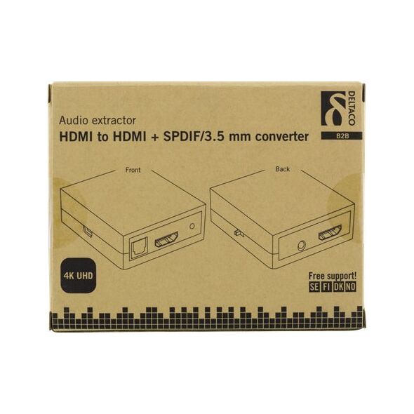 Deltaco HDMI-7038. Τύπος μετατροπέα: Ενεργός μετατροπέας βίντεο, LED: Power, Χρώμα προϊόντος: Μαύρο. Μέγιστη ανάλυση βίντεο: 1920 x 1080 px, Υποστηριζόμενες λειτουργίες βίντεο: 1080p. Κανάλια εξόδου ήχου: 5.1 κανάλια Διεπαφή κεντρικού υπολογιστή: HDMI, Διασύνδεση εξόδου: HDMI, Διασύνδεση εγγραφής βίντεο: HDMI. Πλάτος προϊόντος: 54 mm, Βάθος προϊόντος: 605 mm, Ύψος προϊόντος: 205 mm