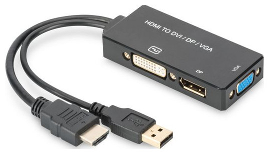 Καλώδιο μετατροπέα HDMI, HDMI - DP + DVI + VGA St-Bu / Bu / Bu, 0,2 m, 3 σε 1 Καλώδιο πολυμέσων, CE, Μαύρο, Χρυσό