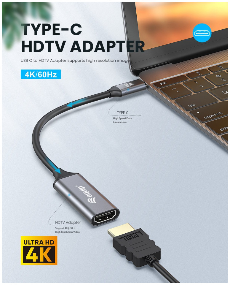Προσαρμογέας AV Equip Προσαρμογέας USB-C -> HDMI 2.0 4K60Hz 0.15m gr