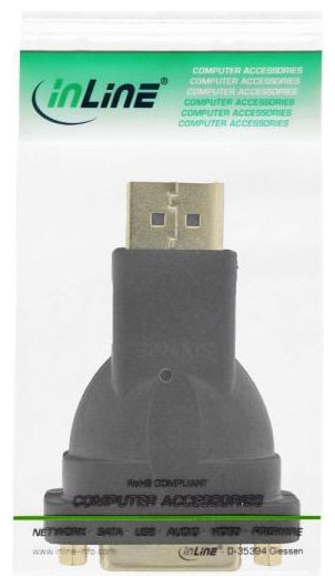 Προσαρμογέας DisplayPort InLine DisplayPort Male to DVI-D 24+1 Female Black Συμβατό με DisplayPort 1.1, υποστήριξη πλήρους σύνδεσης DisplayPort Συμβατό με HDMI 1.3b (προσαρμογέας HDMI) / DVI 1.1 (προσαρμογέας DVI) Υποστήριξη αναλύσεων υπολογιστή: VGA, SVGA, XGA, SXGA , Υποστήριξη UXGA αναλύσεις HDTV: 480i, 576i, 480p, 576p, 1080i, 1080p Για σύνδεση VVI μιας οθόνης σε DisplayPort (μόνο ψηφιακό σήμα DVI-D) Υποστήριξη 4K{Γωνιακό βύσμα} Αρ. {Γωνιακό βύσμα} Αρ. {Γωνιακό βύσμα} Αρ. {Χρώμα} μαύρο . {Χρώμα} μαύρο . {Χρώμα} μαύρο . {Επιχρυσωμένο βύσμα} Ναι. {Επιχρυσωμένο βύσμα} Ναι. {Επιχρυσωμένο βύσμα} Ναι. {Connector type} DisplayPort - DVI-D. {Connector type} DisplayPort - DVI-D. {Connector type} DisplayPort - DVI-D. {Τύπος βυσμάτων} Βύσμα - Πρίζα. {Τύπος βυσμάτων} Βύσμα - Πρίζα. {Τύπος βυσμάτων} Βύσμα - Πρίζα