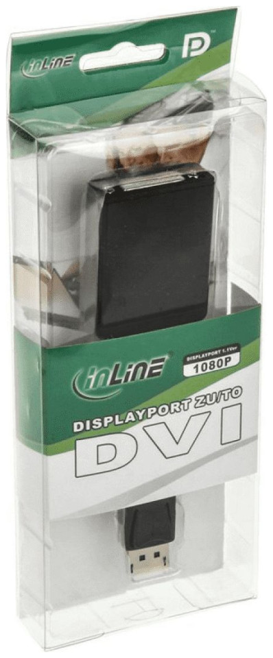 InLine DisplayPort Adapter αρσενικό σε DVI-D 24+1 θηλυκό μαύρο 0,15mInLine DP DisplayPort AdapterDisplayPort αρσενικό σε DVI-D 24+1 θηλυκό μαύρο Μήκος: 15 cm, Παθητικός μετατροπέας, απαιτεί θύρες βίντεο DP++ IC σετ chip: NXP PTN3361{Επιχρυσωμένο βύσμα} Αρ. {Επιχρυσωμένο βύσμα} Αρ. {Επιχρυσωμένο βύσμα} Αρ. {Επιχρυσωμένο βύσμα} Αρ. {Γωνιακό βύσμα} Αρ. {Γωνιακό βύσμα} Αρ. {Γωνιακό βύσμα} Αρ. {Γωνιακό βύσμα} Αρ. {Χρώμα} μαύρο . {Χρώμα} μαύρο . {Χρώμα} μαύρο . {Χρώμα} μαύρο . {Connector type} DisplayPort - DVI-D. {Connector type} DisplayPort - DVI-D. {Connector type} DisplayPort - DVI-D. {Connector type} DisplayPort - DVI-D. {Τύπος βυσμάτων} Βύσμα - Πρίζα. {Τύπος βυσμάτων} Βύσμα - Πρίζα. {Τύπος βυσμάτων} Βύσμα - Πρίζα. {Τύπος βυσμάτων} Βύσμα - Πρίζα
