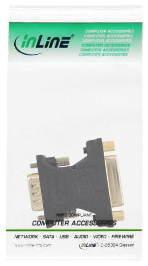 InLine DVI-A DVI Adapter 24+5 θηλυκό σε HD15 αρσενικό - επίχρυσοι ακροδέκτες24+5 θηλυκό βύσμα DVI σε 15 pin HD αρσενικό βύσμα VGA Για σύνδεση οθονών ή τηλεοράσεων DVI-A ή DVI-I στη θύρα VGA D-Sub Χρώμα: μαύροΧρυσό -Επιμεταλλωμένοι ακροδέκτες για μείωση των παρεμβολών{Γωνιακό βύσμα} Αρ. {Γωνιακό βύσμα} Αρ. {Γωνιακό βύσμα} Αρ. {Χρώμα} μαύρο . {Χρώμα} μαύρο . {Χρώμα} μαύρο . {Επιχρυσωμένο βύσμα} Ναι. {Επιχρυσωμένο βύσμα} Ναι. {Επιχρυσωμένο βύσμα} Ναι. {Τύπος σύνδεσης} DVI-I - D-Sub (VGA) . {Τύπος σύνδεσης} DVI-I - D-Sub (VGA) . {Τύπος σύνδεσης} DVI-I - D-Sub (VGA) . {Τύπος βυσμάτων} Βύσμα - Πρίζα. {Τύπος βυσμάτων} Βύσμα - Πρίζα. {Τύπος βυσμάτων} Βύσμα - Πρίζα