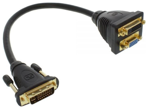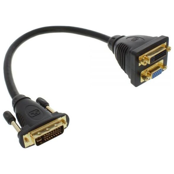 Προσαρμογέας DVI-I InLine DVI-I αρσενικό σε DVI-I θηλυκό + S-VGA θηλυκό Συνδέστε δύο οθόνες ή συσκευές σε μία θύρα DVI-IDVI-I Splitter σε υποδοχή DVI-I + υποδοχή S-VGA Συνδέστε δύο συσκευές σε ένα DVI- θύρα επίχρυσοι ακροδέκτες για καλύτερη μετάδοση σήματος Βύσμα DVI-I (24+5) σε υποδοχή DVI-I (24+5) και Υποδοχή S-VGA (15pin){Γωνιακό βύσμα} Αρ. {Γωνιακό βύσμα} Αρ. {Χρώμα} μαύρο . {Χρώμα} μαύρο . {Επιχρυσωμένο βύσμα} Ναι. {Επιχρυσωμένο βύσμα} Ναι. {Τύπος βυσμάτων} Βύσμα - Πρίζα. {Τύπος βυσμάτων} Βύσμα - Πρίζα. {Τύπος σύνδεσης} DVI-I - D-Sub (VGA) - DVI-I. {Τύπος σύνδεσης} DVI-I - D-Sub (VGA) - DVI-I